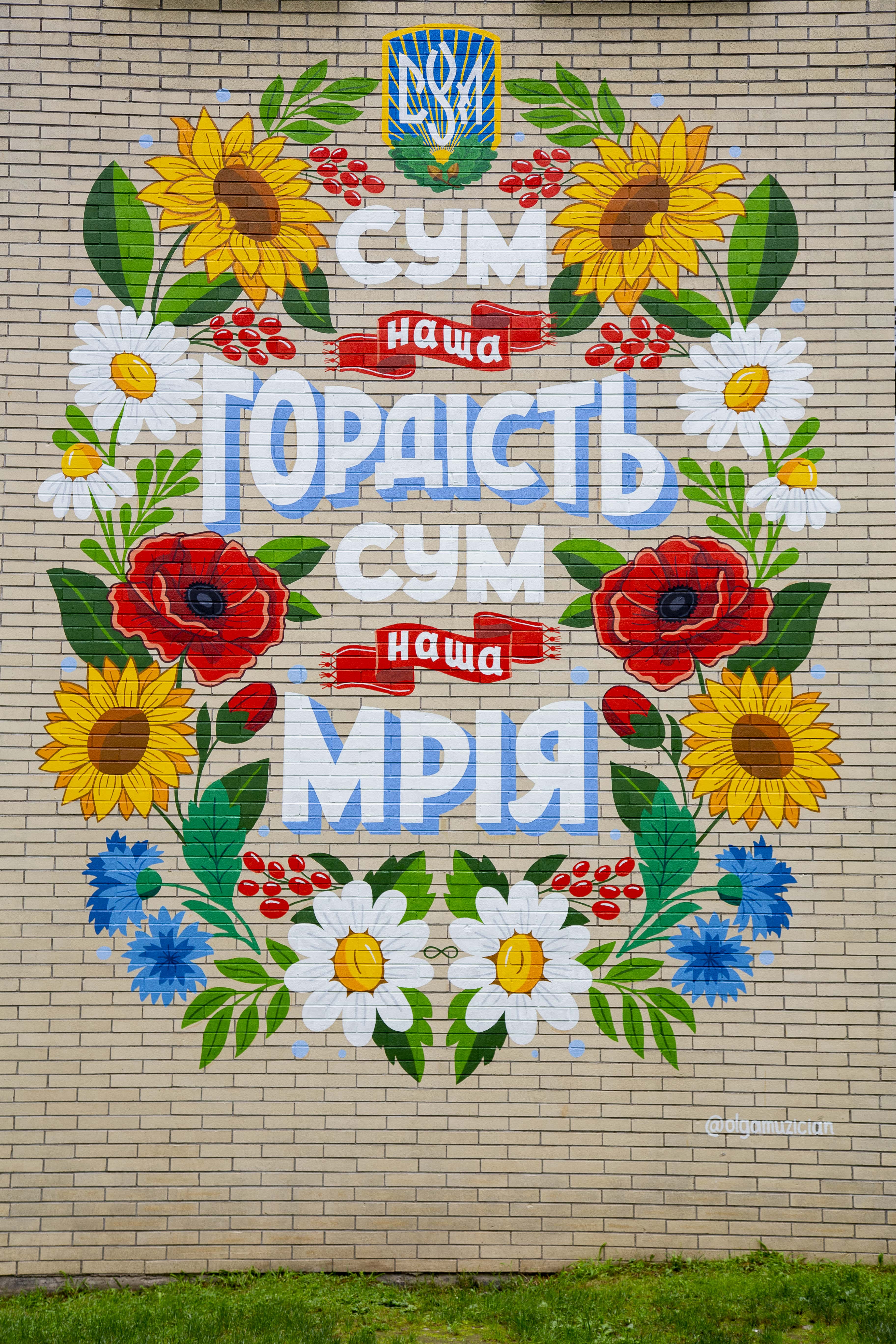 This mural, created by Olga Muzician Pacilio in May 2024, features the heartfelt inscription “CYM our pride, CYM our hope.” At the top, the CYM logo is beautifully framed by vibrant Ukrainian flowers, including sunflowers, red poppies, and daisies. Generously donated by Gene and Christina Tomashosky, this mural serves as a lasting tribute to their beloved daughter, Valentina (Valya) Tomashosky.
